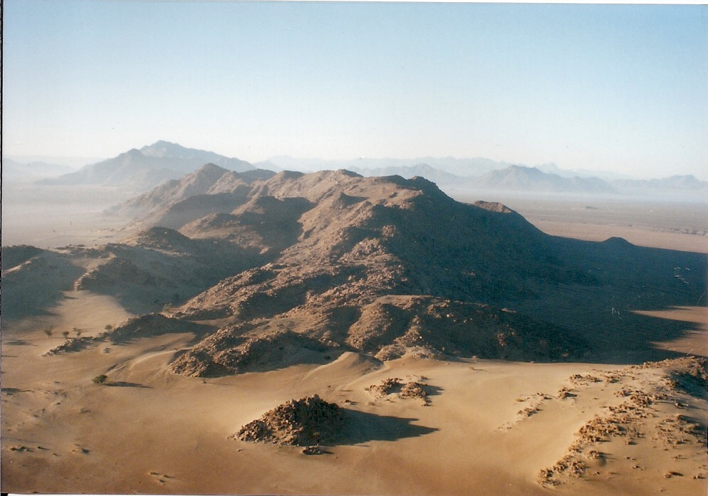 Up in a hot air balloon with Aitch high over Sossusvlei in the Namib desert. Up in the pre-dawn, we go and fetch the sun from where he’s snuggling, reluctant to get out of bed. Beautiful to see a sunrise while the ground below you is still in darkness. Later the sun actually rises for the earthlings below us and the trees start throwing lo-ong shadows. A 10m tree has a 200m shadow on the sand. We rise high, then sink down till we’re zooming at treetop level, then soar up again till the trees are little specks and only a dust trail shows where the ground crew is chasing after us, estimating where we’ll land. The intermittent roar of the gas flame is harsh, making the silence between bursts even more special and serene.